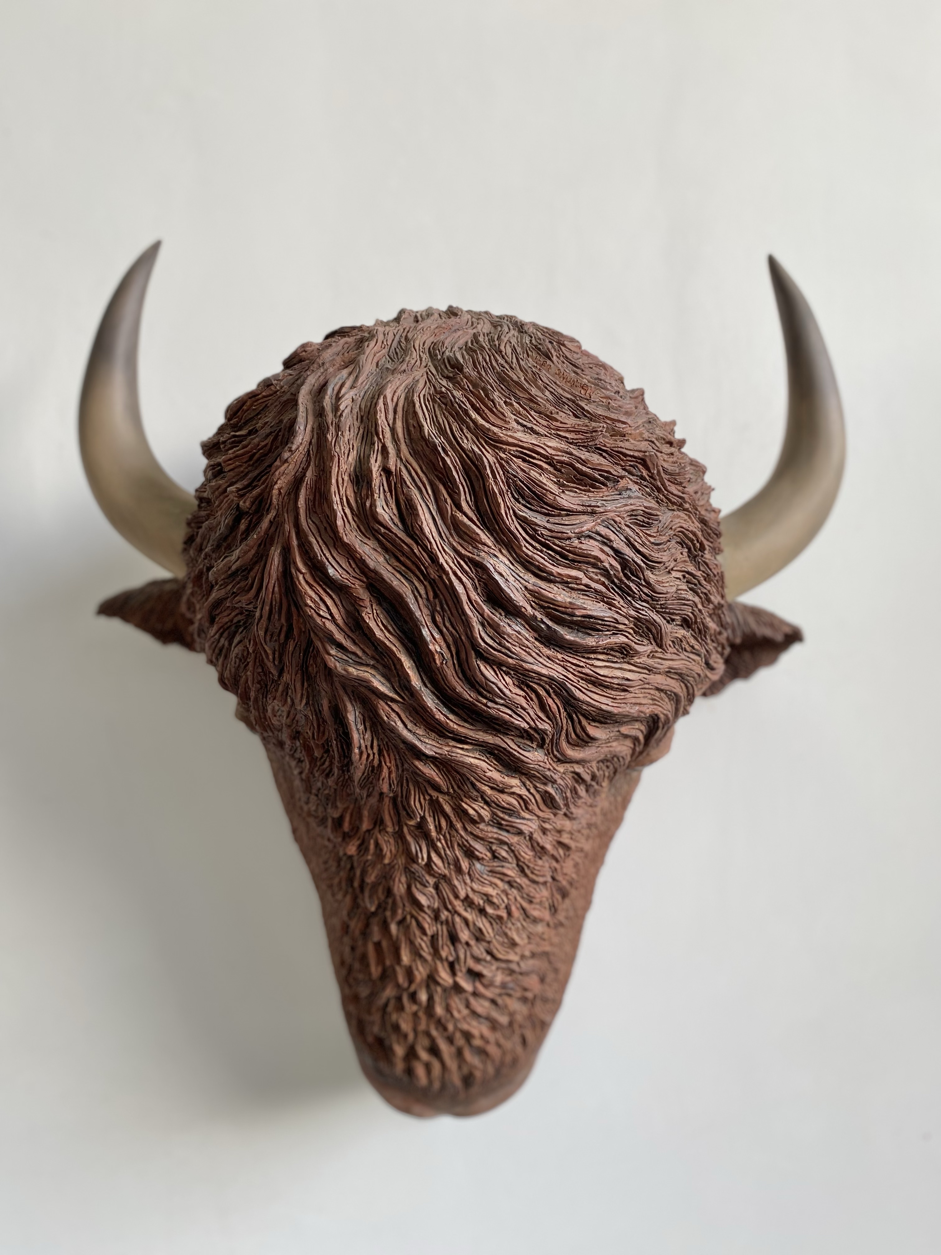 Oggi voglio parlarti di una mia opera d’arte fatta nel lontano 2011. Da vero appassionato degli Indiani d’America, ho voluto rappresentare, utilizzando esclusivamente terracotta, la testa di un bisonte (americano, non europeo!). Puoi immaginare, oltre al peso della scultura, l’enorme lavoro per svuotare, modellare e scolpire la terracotta.